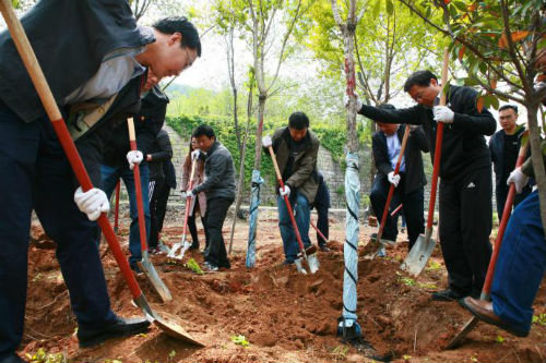 隨后,進行了植樹活動,大家齊心協力,親手種下了50棵金葉榆,用植樹這種方式向在四川木里森林火災撲救中英勇犧牲的英雄烈士們致敬。