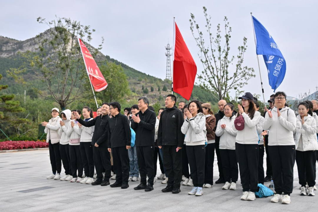 活動開始后,在健身教練的引領下,大家熱情洋溢地投入到熱身運動中,每一個動作都充滿了活力與期待。隨后,全體干部職工高舉鮮艷的旗幟,踏上了前往佛慧山的征途。