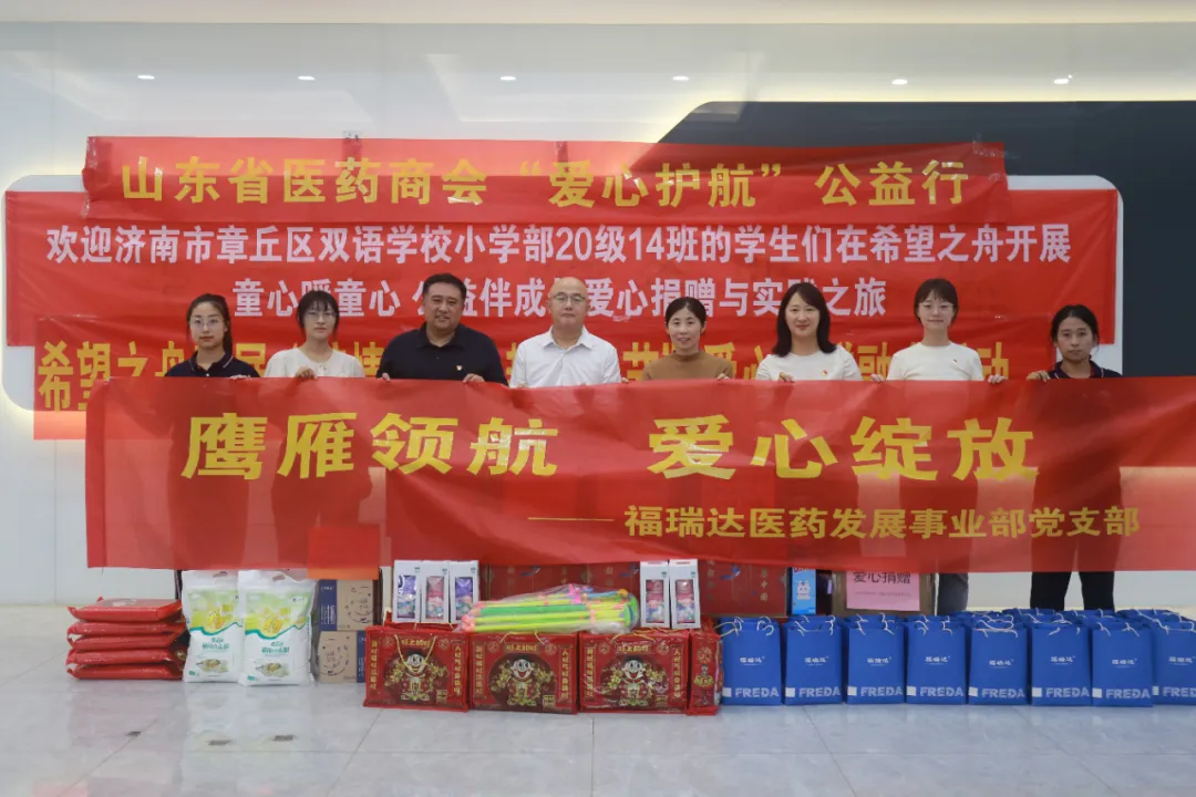 5月30日下午,福瑞達醫藥發展事業部黨支部與山東省醫藥商會聯合走進舜華路街道玉蘭社區居委會濟南希望之舟特殊兒童學校,開展“鷹雁領航聚溫情,守護童心綻光彩”主題公益活動。以實際行動履行社會責任,為特殊兒童群體送上溫暖關懷,彰顯了國企與行業組織的使命擔當。