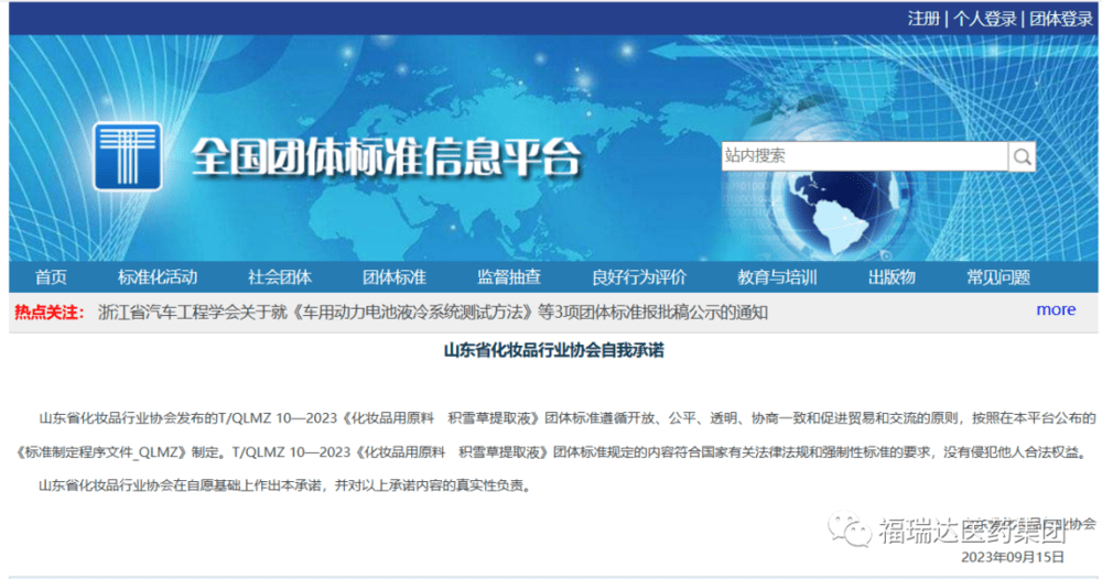 近日,由山東明仁福瑞達(dá)制藥股份有限公司(以下簡(jiǎn)稱(chēng)“明仁福瑞達(dá)”)主要起草,山東福瑞達(dá)生物股份有限公司、煙臺(tái)市食品藥品檢驗(yàn)研究中心等公司參與起草的《化妝品用原料積雪草提取液》(T/QLMZ 10-2023)、《化妝品用原料丹皮酚微囊粉》(T/QLMZ 11-2023)團(tuán)體標(biāo)準(zhǔn)在全國(guó)團(tuán)體標(biāo)準(zhǔn)信息平臺(tái)正式發(fā)布,這是國(guó)內(nèi)首個(gè)化妝品用積雪草提取液、丹皮酚微囊粉團(tuán)體標(biāo)準(zhǔn)。