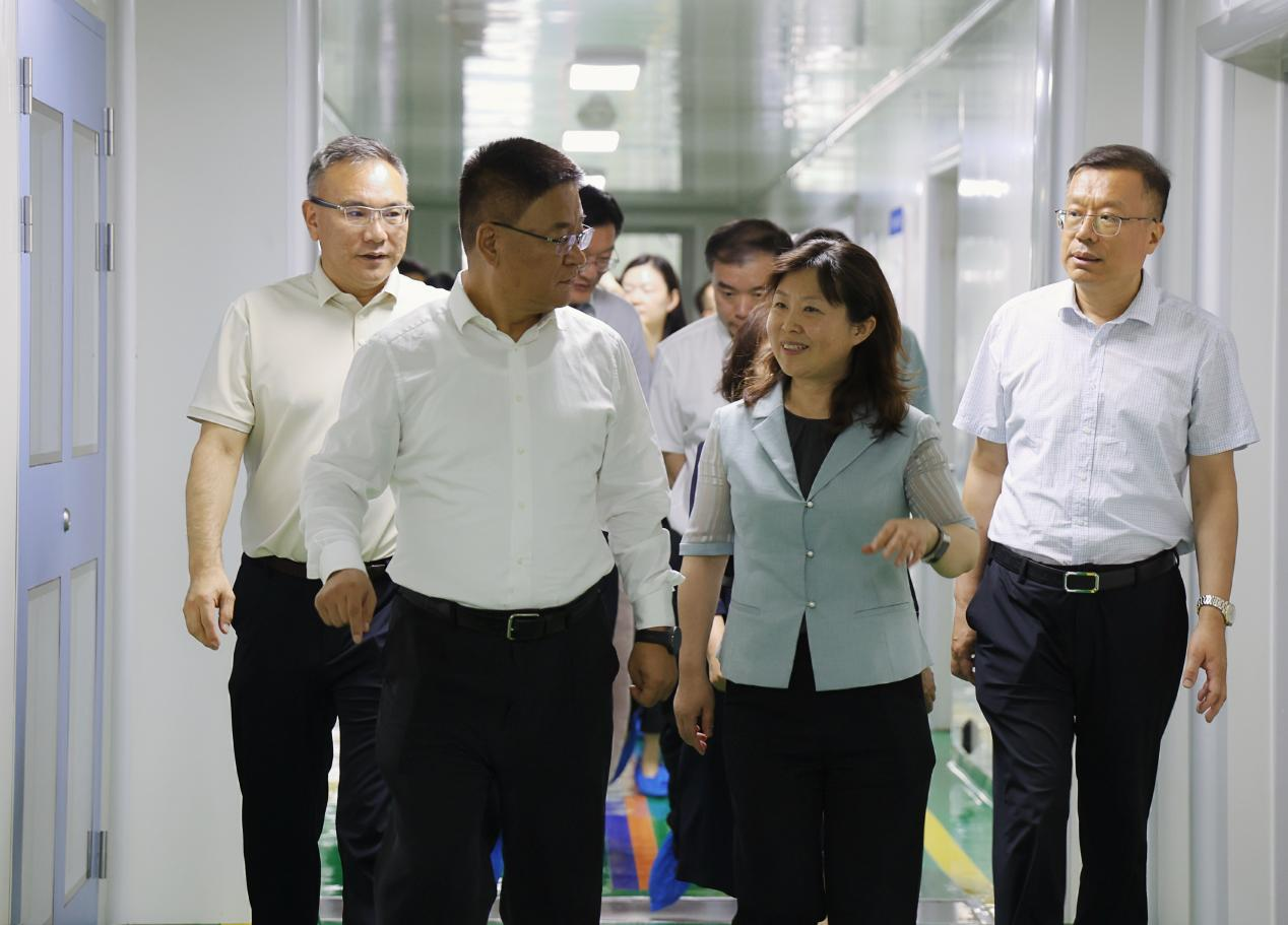 6月16日,山東省科技廳黨組書記、廳長孫海生一行蒞臨福瑞達智美科創園調研指導。省科技廳黨組成員、副廳長梁愷龍,濟南市科技局黨組成員、副局長彭文博,濟南高新區黨工委委員、管委會副主任李凱等陪同調研。魯商集團總經理助理,福瑞達黨委書記張岱州,福瑞達黨委委員、副總經理,福瑞達生物股份董事長、總經理高春明熱情接待并作工作匯報。