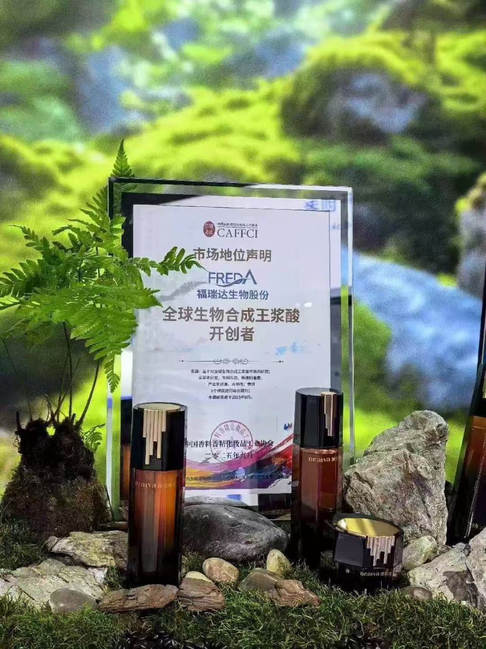 王漿酸的產業化,正是這一引擎威力的生動體現。素有“液體黃金”之稱的王漿酸(學名10-羥基-2-癸烯酸),曾因傳統提取法產量低、成本高而難以普及。如今,福瑞達攜手齊魯工業大學王瑞明教授團隊,借助合成生物學技術破譯其生物合成分子機制,構建專屬工程菌株,再結合高密度發酵與純化技術,成功實現高純度(≥98%)王漿酸的綠色高效合成。這一成果不僅完成國內該成分化妝品新原料備案,還圍繞技術申請7項發明專利、斬獲學術大獎,讓“長壽因子”從自然珍稀品變為可規?;慨a的“中國智造”原料。